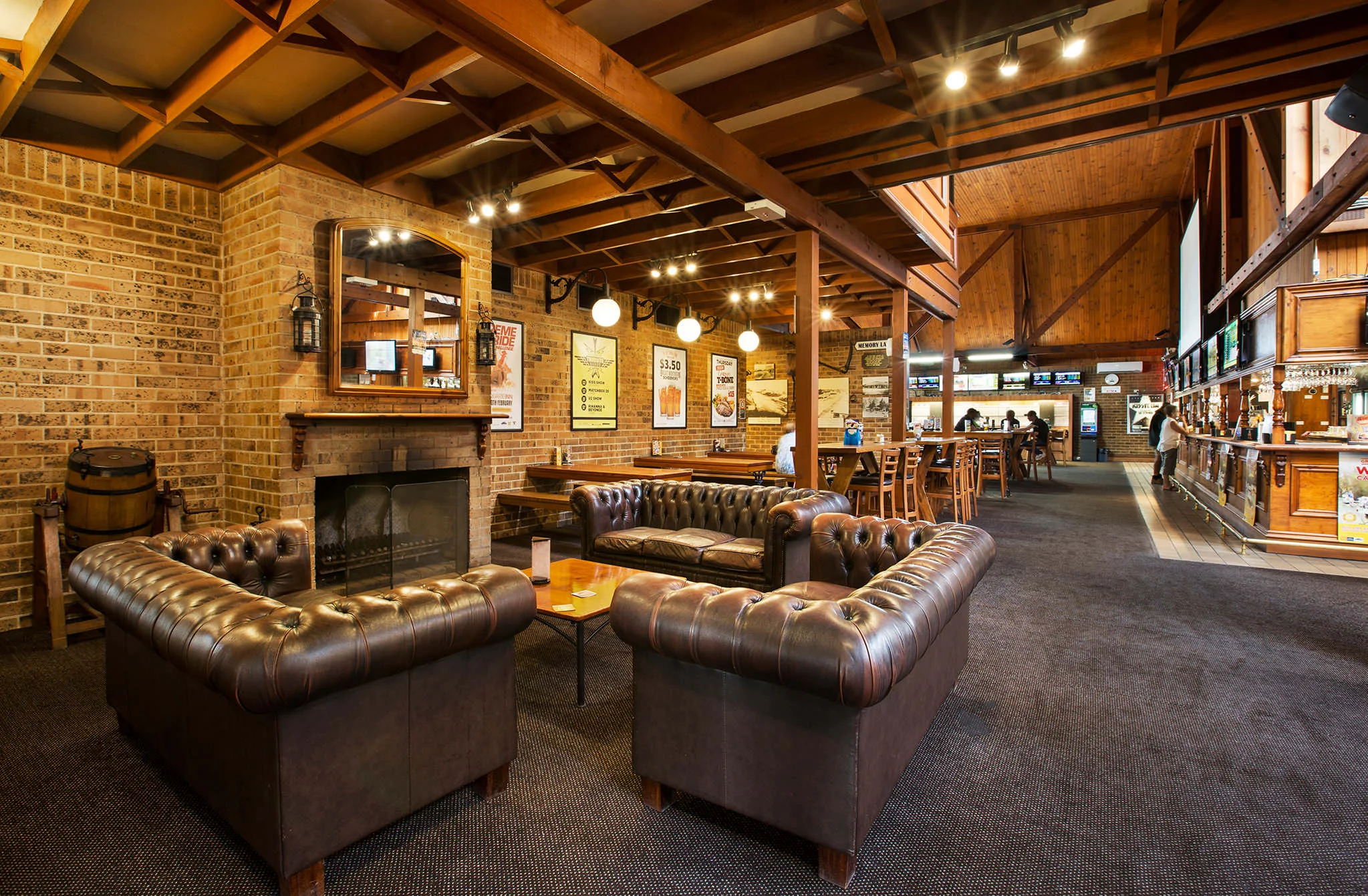 You'll be greeted with Australian warmth and character throughout the building with exposed beams, raked ceilings with cypress pine throughout, open fireplaces and wide verandas.